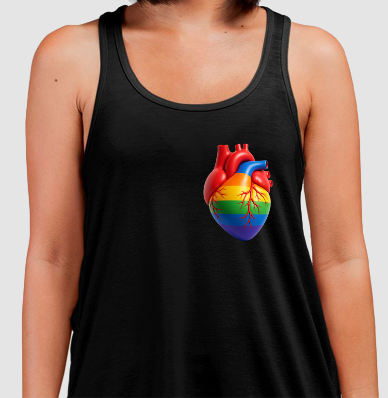 Um coração vibrante nas cores do arco-íris pulsa nesta estampa, celebrando o amor em todas as suas formas. Símbolo de diversidade, esperança e inclusão, é perfeito para expressar alegria e orgulho. Vista essa energia colorida!