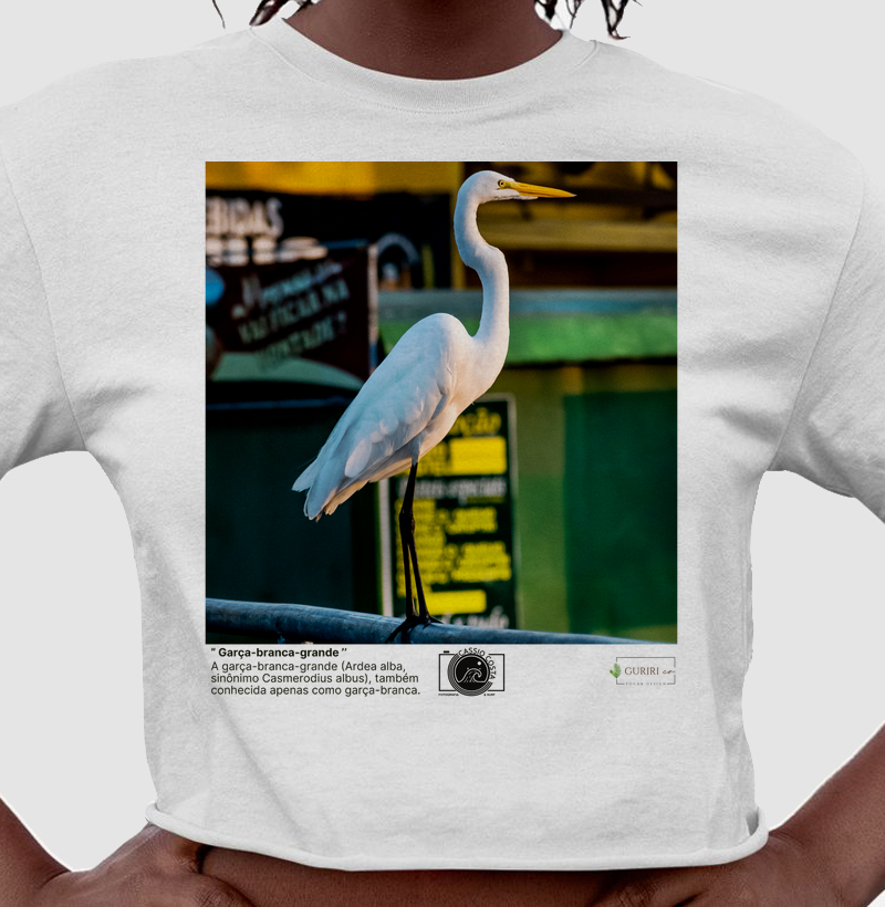 Ver detalhesEste Cropped é um tributo a fauna brasileira, em especial do nosso estado; Espírito Santo rico em beleza naturais, cultura e história. Inspirada pelas lentes sensíveis e apuradas do fotógrafo Cassio Costa, cada detalhe captura a essência dessa fauna nesse lugar encantador, onde o mar, o céu, a fauna e a comunidade se encontram em harmonia. Confeccionada com materiais sustentáveis, esta peça une a responsabilidade ambiental à valorização das paisagens e histórias locais. É mais do que um Cropped; é uma expressão de amor por essa fauna e pelo planeta, traduzida em design, arte e propósito. Vista a Garça Branca Gigante. Vista sustentabilidade. Vista a arte de Cassio Costa.