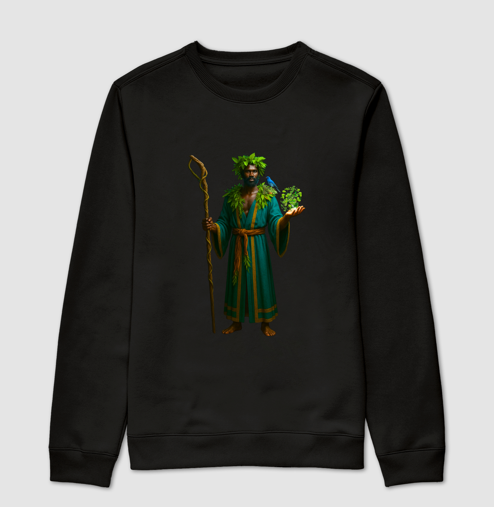 Conecte-se com o poder da natureza e da cura com a camiseta "Ossain: O Curador das Ervas e dos Segredos da Natureza". Este design místico homenageia o Orixá das folhas, da medicina e da sabedoria natural. Ossain simboliza o conhecimento das ervas, a cura e a ligação profunda com os segredos da floresta. Perfeita para quem busca bem-estar, equilíbrio e a força da flora. Ewé Ó!
