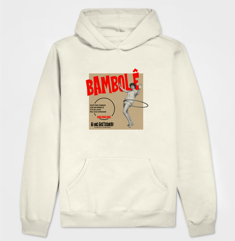 Entre o ritmo do samba e a nostalgia da infância, essa estampa gira em torno da música, do corpo e da memória afetiva. Com estilo retrô e tipografia marcante, “Bambolê” é puro movimento, balanço e atitude. Ideal pra quem dança, gira e vive no compasso da batida brasileira. “Ai que gostosura!”